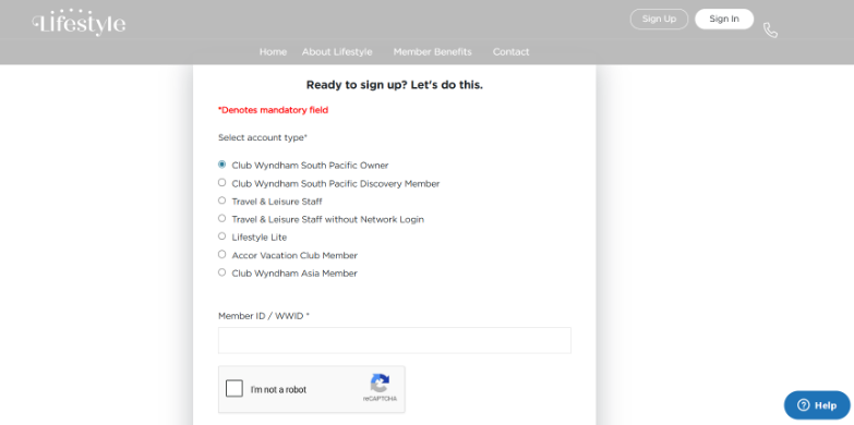 - Select "Club Club Wyndham South Pacific owner" as your account type